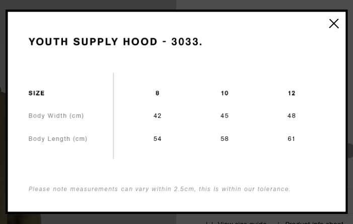 Click here for size chart