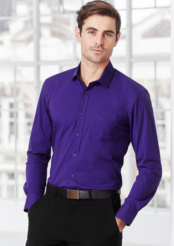 - Two-piece button-down collar, centre back box pleats and hanger loop, and chest pen holder reinforced at edges